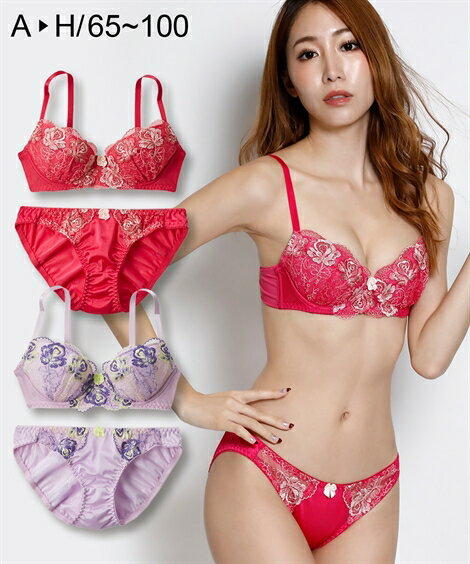 【期間限定 クーポン&ポイント10倍】 ブラジャーショーツセット (E85/LL-H80/L) 大きいサイズ フラワーデザイン ブラ ショーツ セット ニッセン 女性 下着 レディース セクシー 刺しゅう 花柄