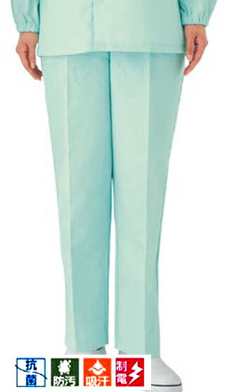 ■カラー: (1)オフホワイト (2)サックス (3)グリ−ン ■脇ゴム・ツータック・ポケット無し ■ポリエステル85% 綿15% ツイル ウエフトロック加工・エバレットII加工 抗 菌 性 大腸菌の増殖を防ぐ抗菌効果を発揮。